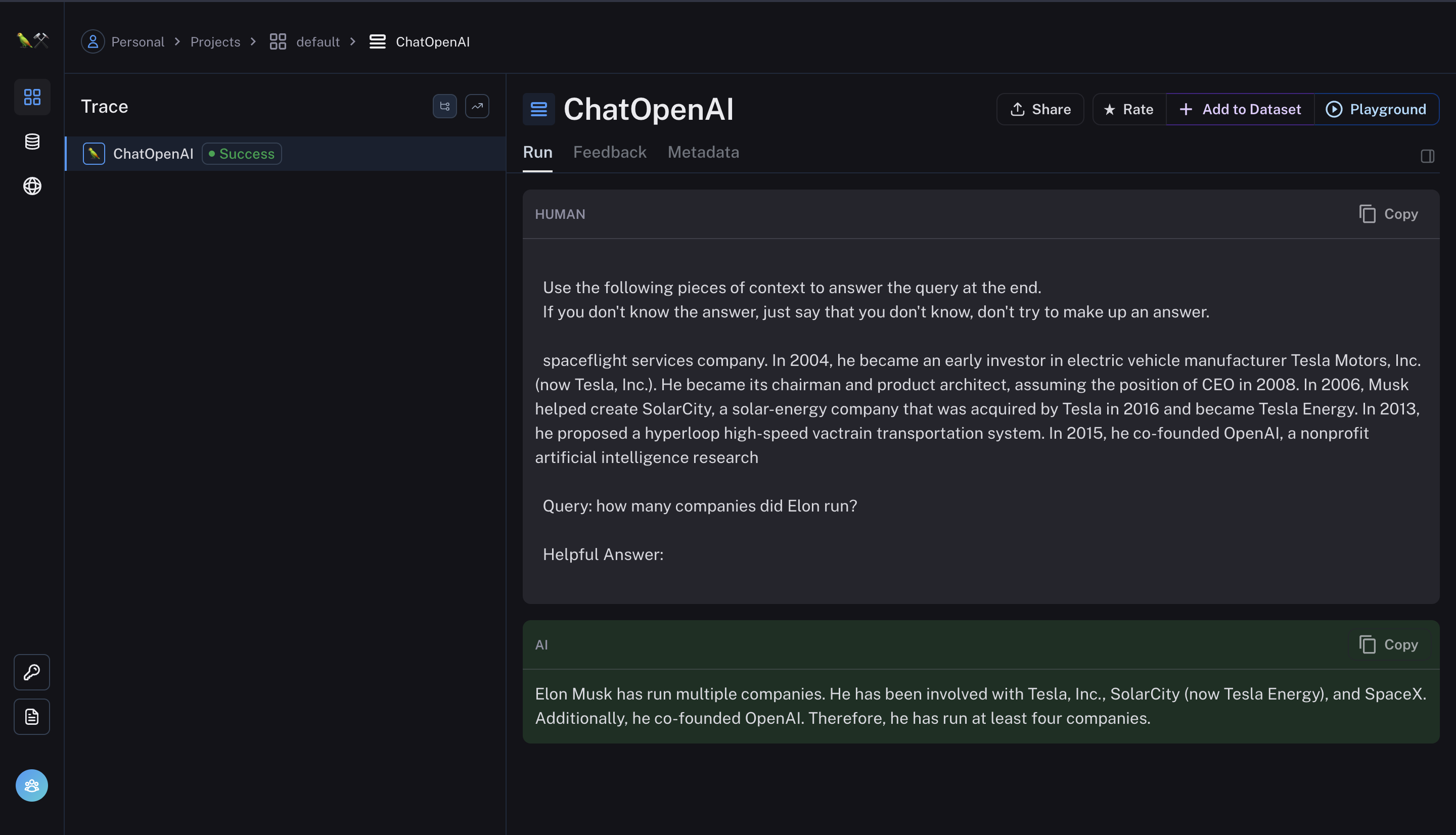 - Just use EmbedJs and everything will be logged to LangSmith, so that you can better test and monitor your application.